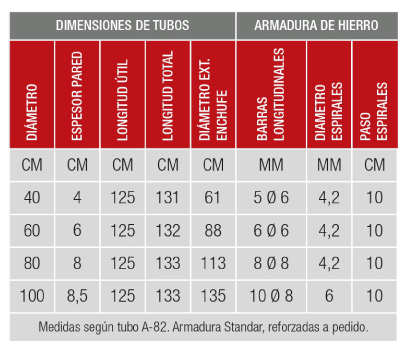 - Stock permanente: tubos estándar, reforzados y extra reforzados a pedido.
